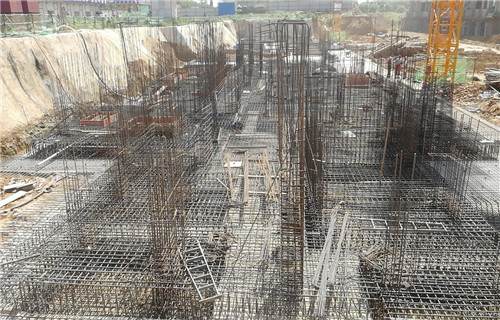 10#楼及附属车库:负一层内架加固、梁板钢筋绑扎进行