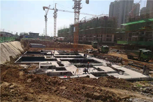 5#楼配电房基础承台混凝土浇筑,11层公区施工完成及户内样板施工