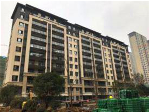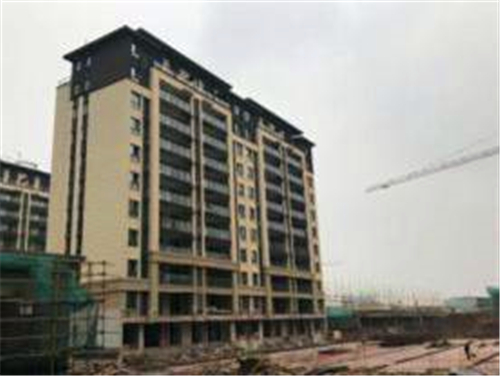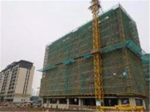 4#楼:土建修补,首层墙砖铺贴完成,顶层阳台雨棚钢架安装完成。