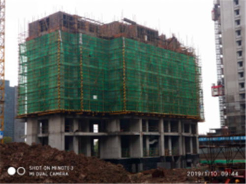 1#楼:地下室、一层墙体补砌,一层外墙粉刷脚手架搭设。