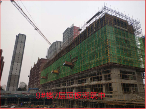 7#楼:室内地坪清理完成;管道井防火门安装至20层;10-15层室内安装管线开槽施工;25-23层地坪浇筑施工;塔吊拆除完成。