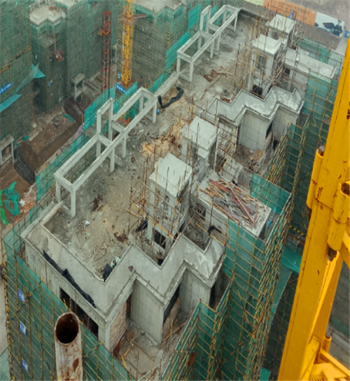 10#楼:21层结构施工完成;10层墙体砌筑,二构施工至8层。