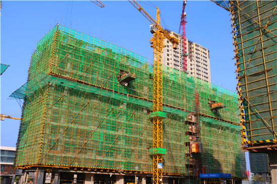 17#楼:8-11层公区地砖铺贴,卫生间防水施工完成。