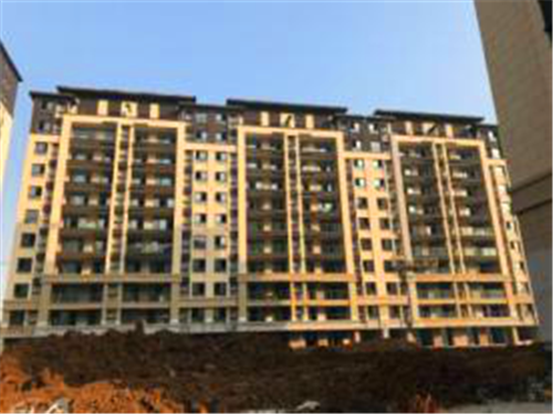 13#楼:2层以上涂料完成,阳台护栏玻璃安装,电梯门套安装。
