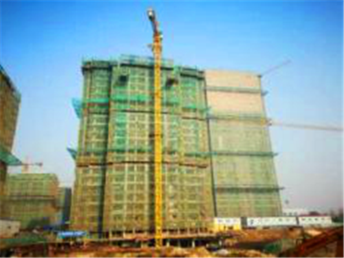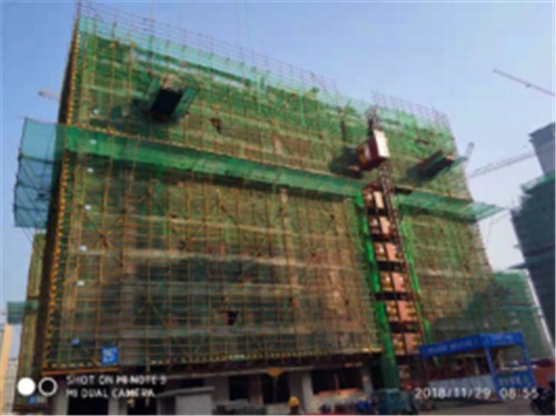 17#楼:2层以上涂料完成,阳台护栏玻璃安装,电梯门套安装。