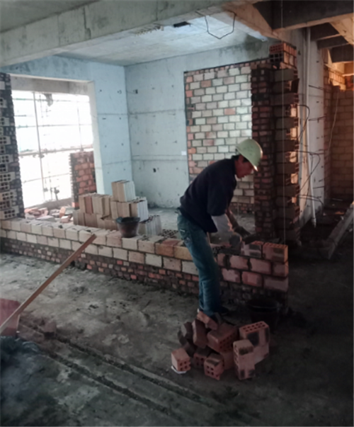 11#楼:砼结构施工完成,4层墙体砌筑。