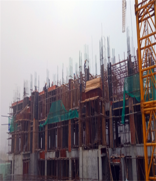 6#楼:砼结构施工完成;4层墙体砌筑。