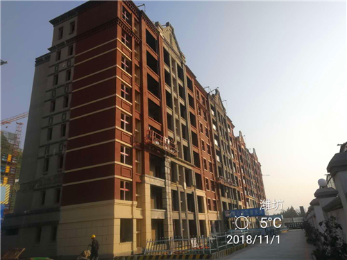 1#楼:窗框安装完成;外墙真石漆完成60%;阳台护栏开始安装。