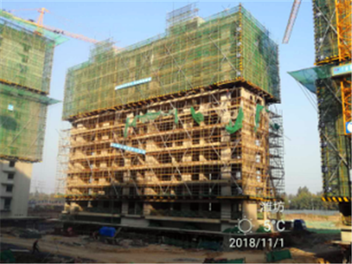 3#楼:封顶,砌筑完成21层,二次结构完成17层;内墙抹灰完成2层。