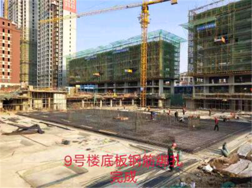 9#楼:基础底板钢筋绑扎完成。
