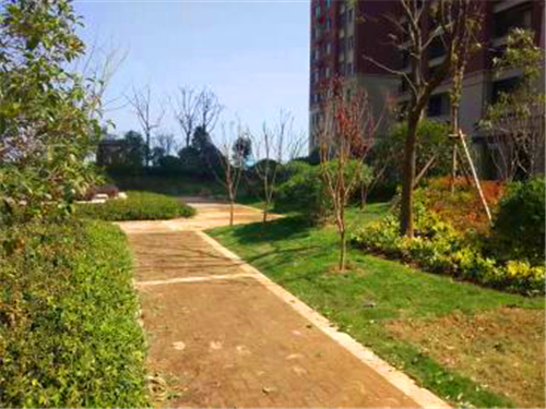 3、7# 、8#楼停车位垫层施工完成,散水坡位置整平完成,乔木及小灌木栽植完成。