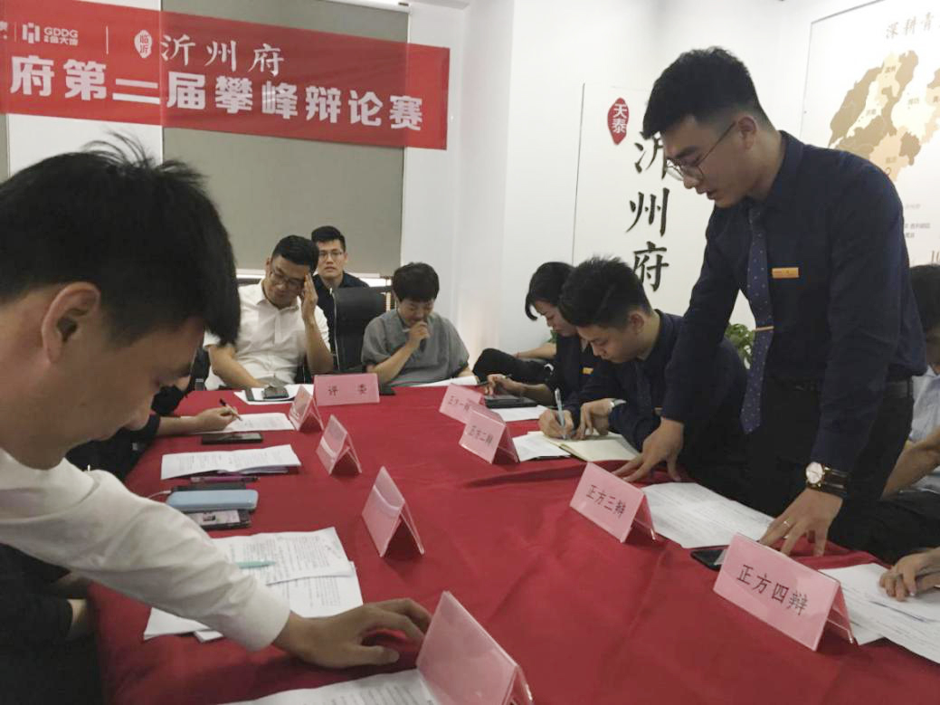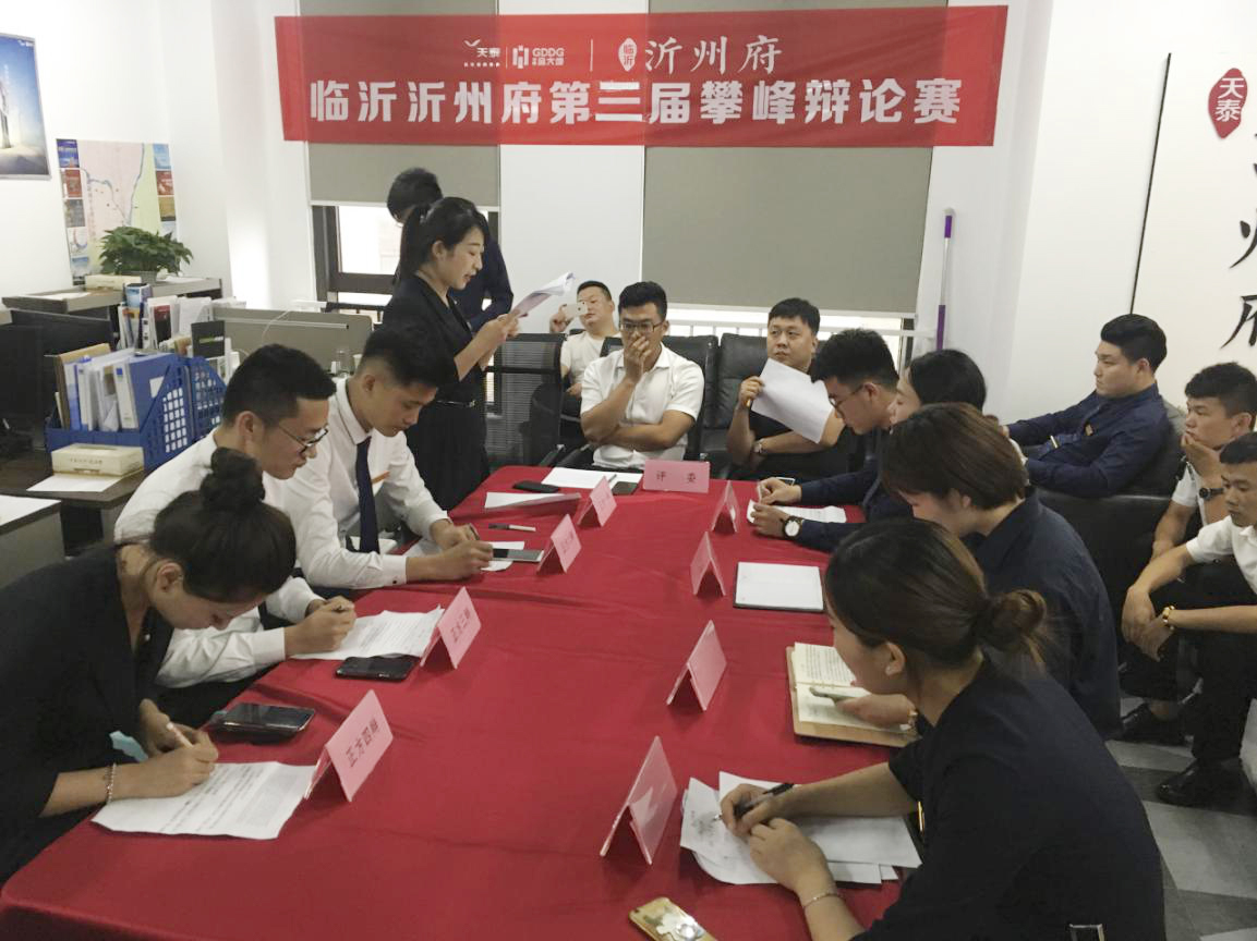 流火七月,临沂沂州府项目举行了以“攀峰辩论”为主题的创意培训。辩论可以让人辩是明非,坚持真理,锻炼思维能力。“针锋相对”的模式,可以让一个团队体会“团结就是力量”的重要性,懂得目标是团队的动力之源,纪律就是团队行为的准则。