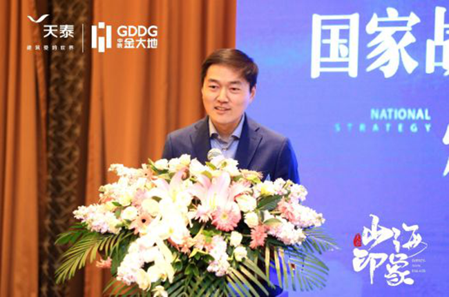 精彩的开场舞后,金大地集团山东区域营销总监孟德旺先生登台致辞,向各位来宾表示了诚挚的欢迎,并就古镇口未来发展空间和金大地&天泰合资公司品牌战略布局进行了深度探讨。
