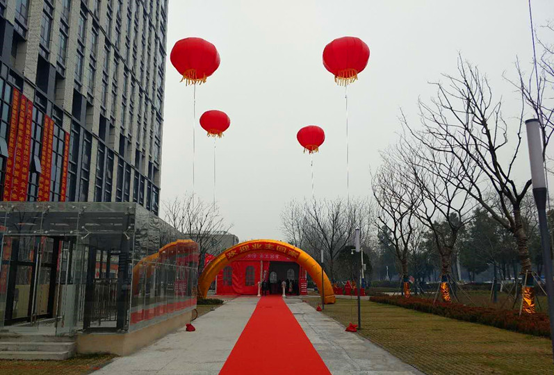 交付前夕,项目客户服务部就提前对交付现场进行了包装布置,红毯直铺入户,歌曲悠扬肆意,呈现出楚竹燕歌动画梁的景象。步入小区,家家户户福气临门,空飘灯笼摇曳生姿,树木金布缠绕,火树银花不夜天不过如此。