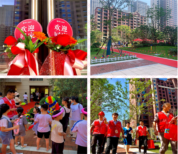 交付现场,无不充盈着温暖的归属感。转动的风车,将归家之路,点缀成缤纷的童梦乐园。喜庆的小丑,把精美的礼品呈上,传递新地中心对业主们幸福生活的期许。诗意园林、景观小品将归家的氛围妆点得更加温馨。除此之外,现场还为家人们准备了精致的冷餐茶歇,随处可见、无微不至的周到服务,让家人们感受到美好归家的礼遇。这一切,在进入小区的那一刻到收获新家的流程走完,每位业主都感受颇深,完美享受到了新地中心工作人员热情又暖心的接待。