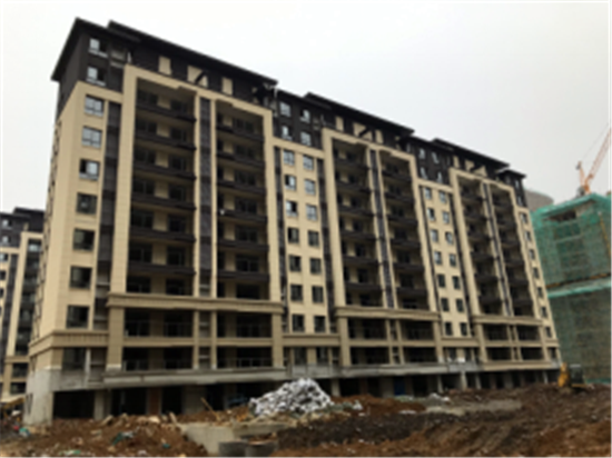 17#楼:8-11层公区地砖铺贴,卫生间防水施工完成。