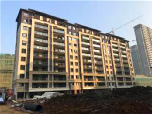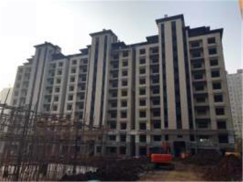 13#楼:2层以上涂料完成,阳台护栏玻璃安装,电梯门套安装。