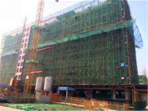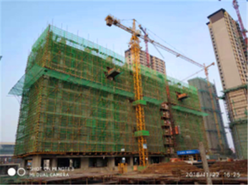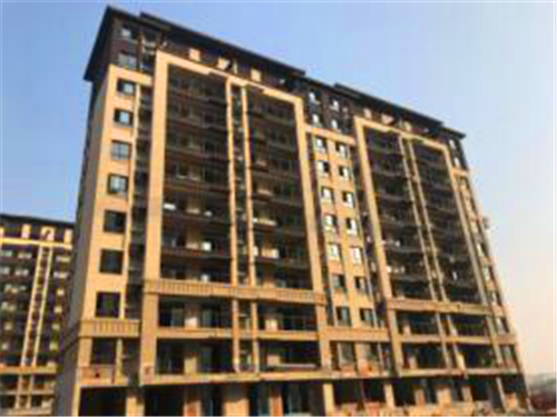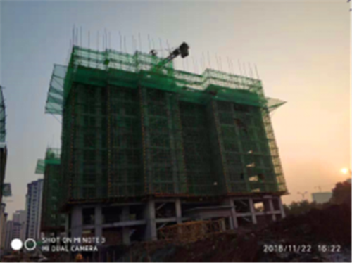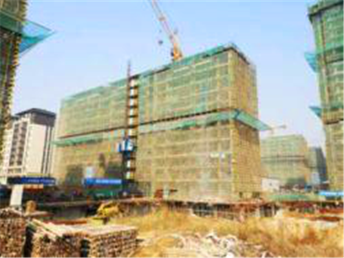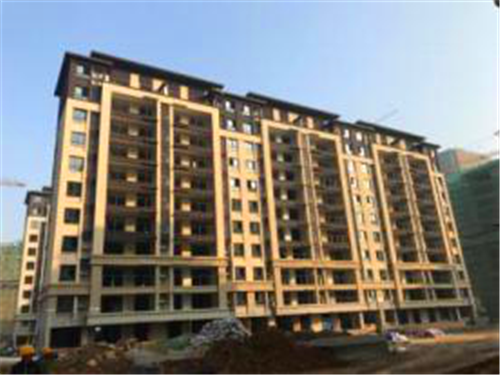 17#楼:2层以上涂料完成,阳台护栏玻璃安装,电梯门套安装。
