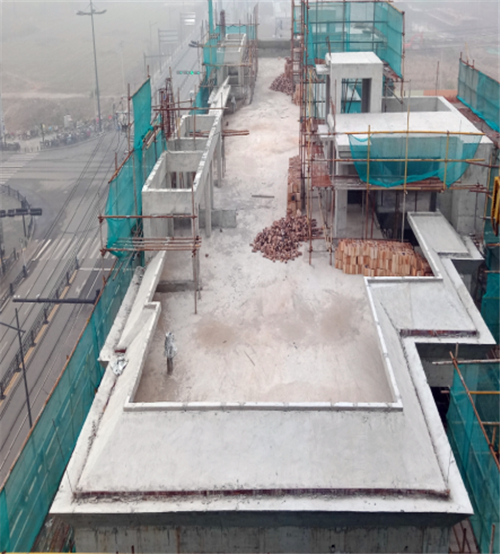3#楼:砼结构施工完成;2层墙体砌筑。