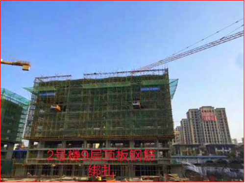 2#楼:9层结构钢筋绑扎。