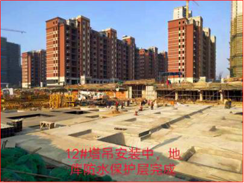 12#楼:塔吊安装,地库防水保护层完成。