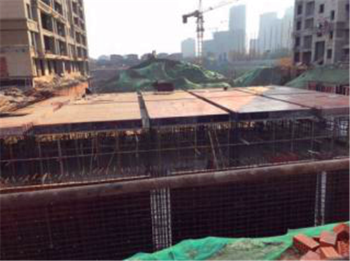 32#楼:首层墙柱模板加固,顶板钢筋绑扎完成。