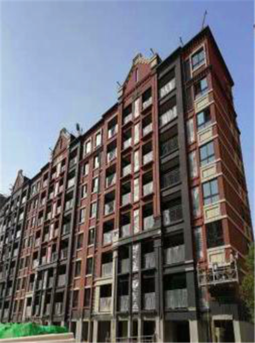 17#楼:内粉完成,外墙3-11底漆施工完成,1-2层劈开砖大面铺贴完成。