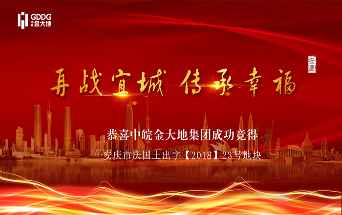 10月31日,中皖金大地集团成功竞得安庆市庆国土字【2018】23号地块,土地面积141.9亩。