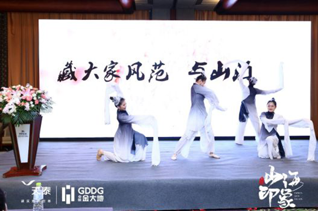 发布会还未开始,宾客们便已陆续就座,在等待中欣赏项目品牌VCR,众多大咖齐聚,表达了对金大地·山海印象的美好祝福。下午3时左右,发布会正式启幕,一场惊艳绝伦的水墨舞震撼登场,艺术表演者们动若流云、静若画卷的表演瞬间将现场观众引入古韵中国风中,带给宾客身临其境的绝佳观感。