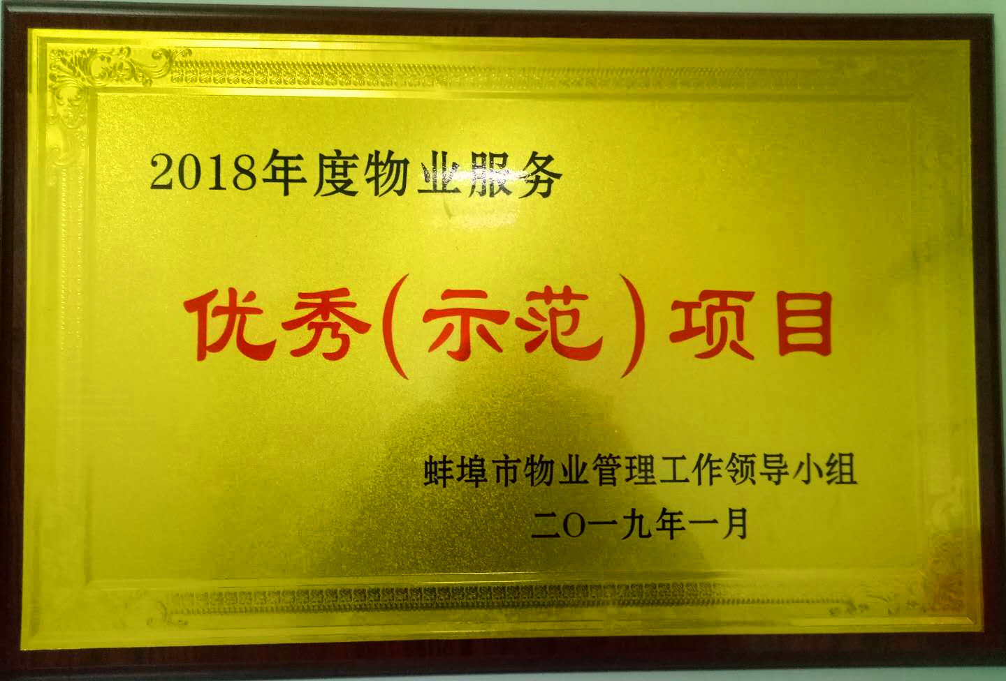 2019年1月,蚌埠新地城市广场物业被蚌埠市物业工作领导小组授予蚌埠市2018年度物业服务“优秀(示范)项目”,项目经理杨波荣获“优秀项目经理”称号。