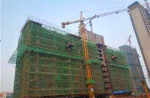 4#楼:土建修补,首层墙砖铺贴完成,顶层阳台雨棚钢架安装完成。