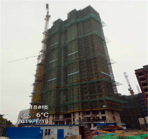 18#楼:墙体砌筑26层,二次结构施工15层。