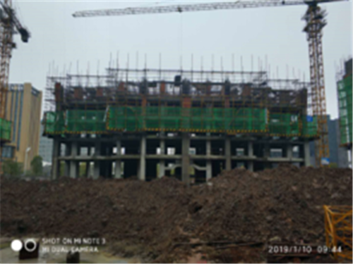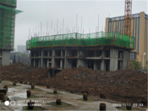 1#楼:地下室、一层墙体补砌,一层外墙粉刷脚手架搭设。