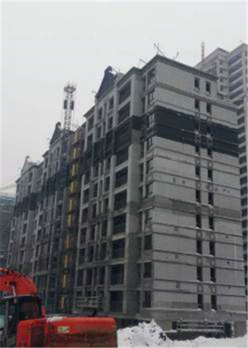 34#楼:2层以上二构完成,外粉3层完成,保温板5层施工。