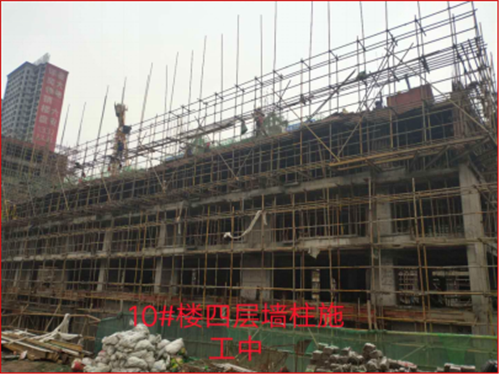 10#楼:4层结构墙柱钢筋绑扎施工。