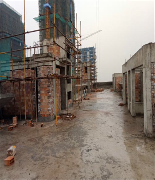 6#楼:砼结构施工完成;10层墙体砌筑,二构4层施工。